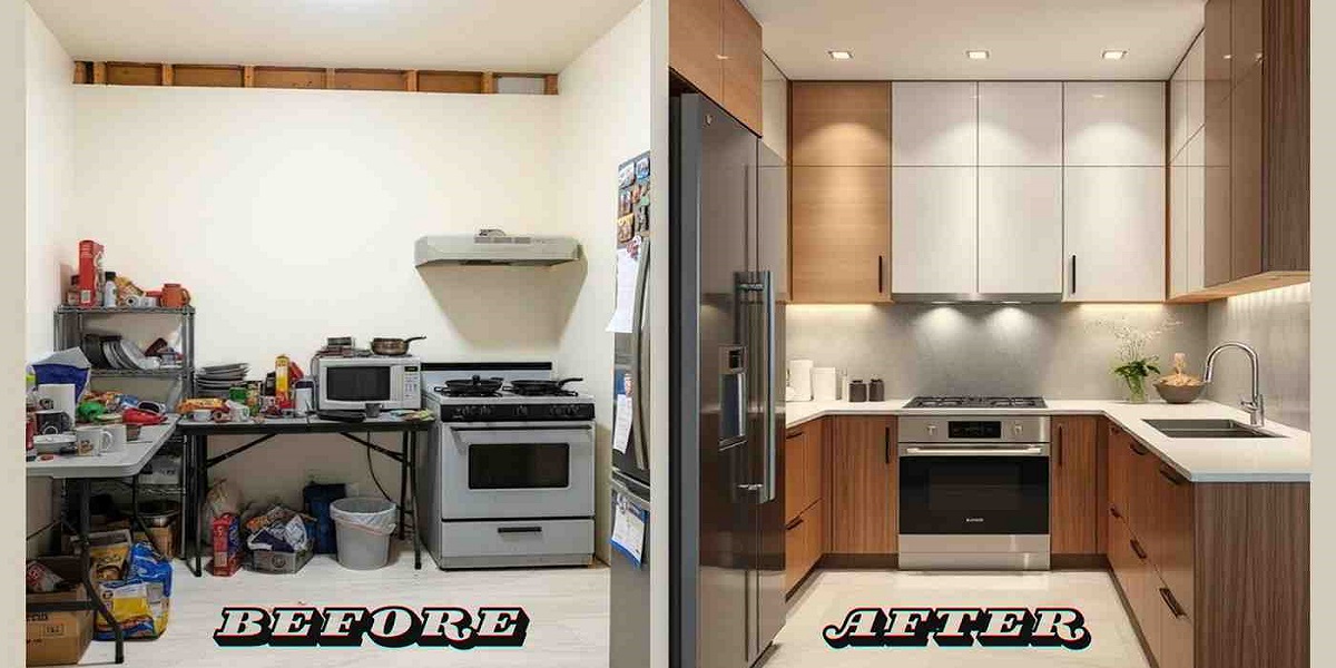 Every kitchen tells a story. Ours begins with a space that feels ordinary and ends with a masterpiece. The “before” may look like clutter, but the “after” look is a celebration of symmetry and functional beauty.